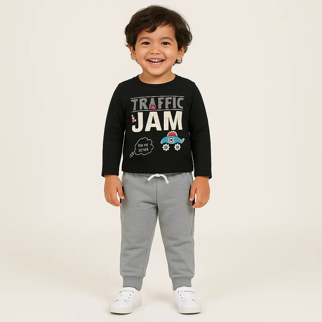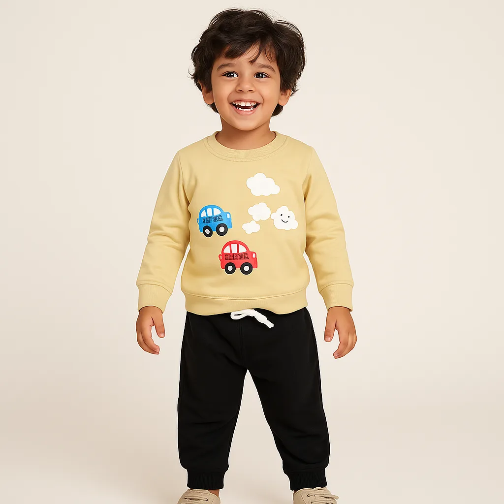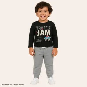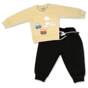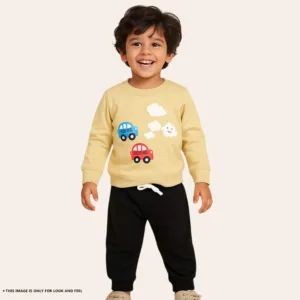 Joy Kids Baby Boy Cotton Fleece 2-Piece Set – Full-Sleeve Top with High Neck & Elastic Waist Pants