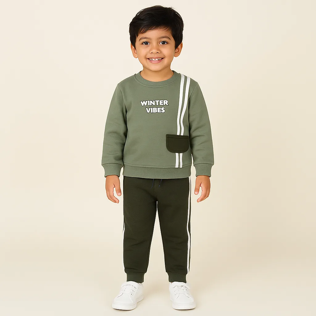 Joy Kids Baby Boy FleeceTwo-Piece Set – Full-Sleeve Top with High Neck & Elastic Waist Pants