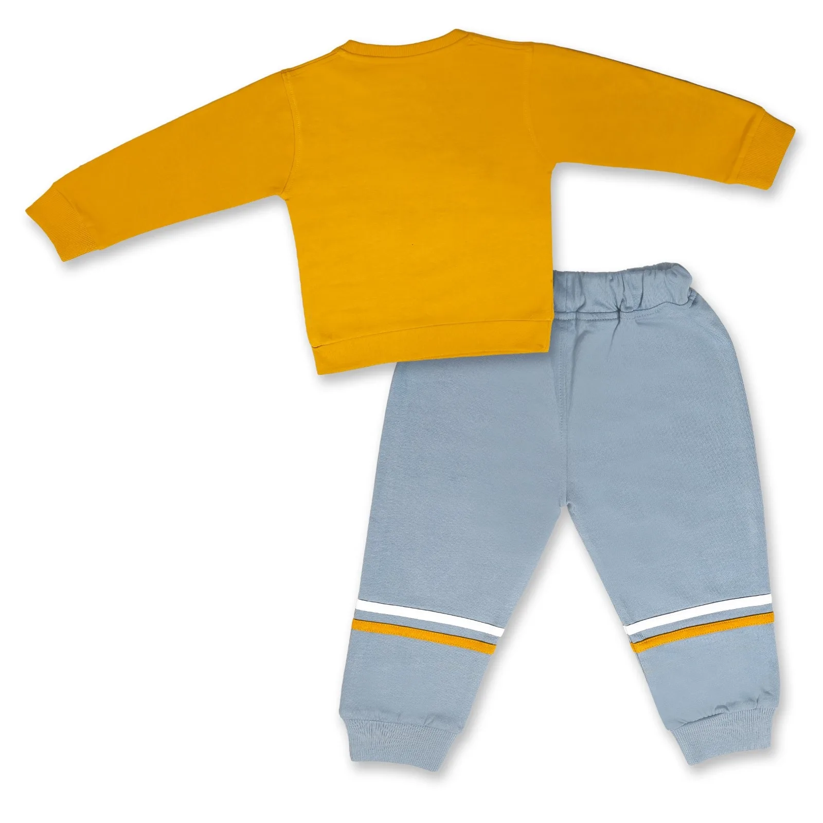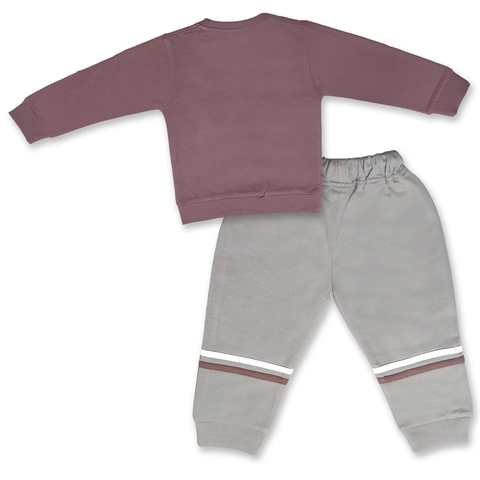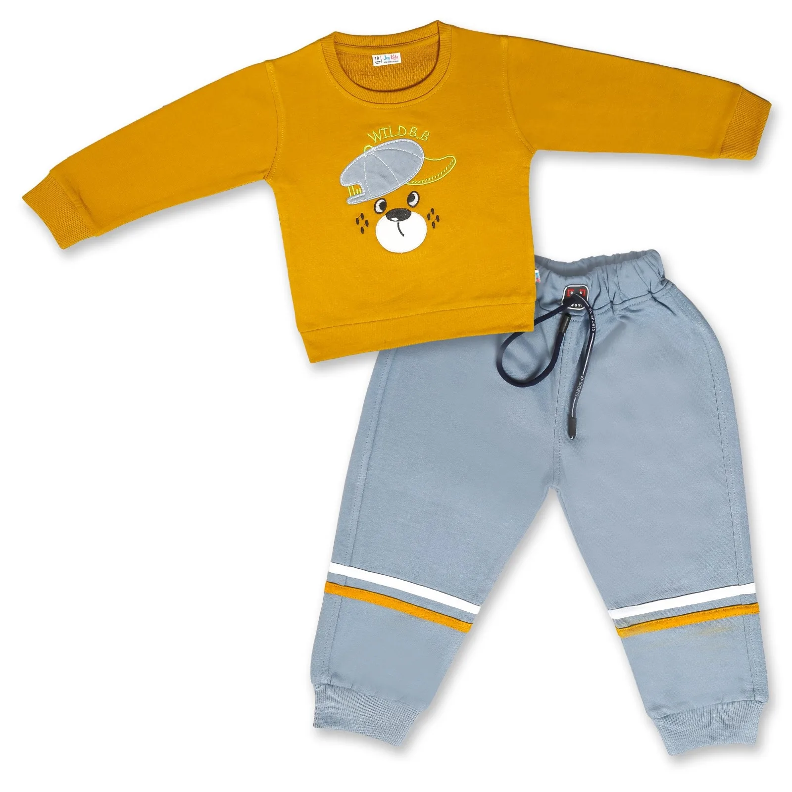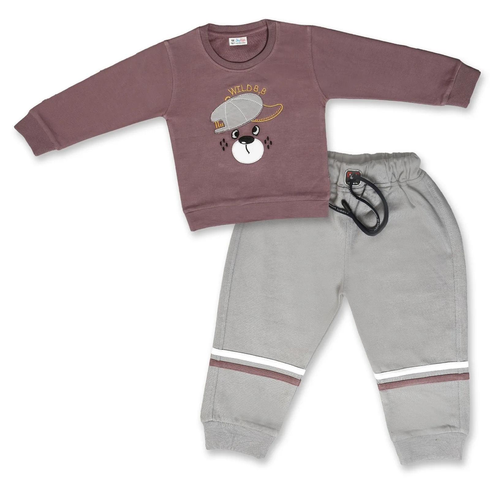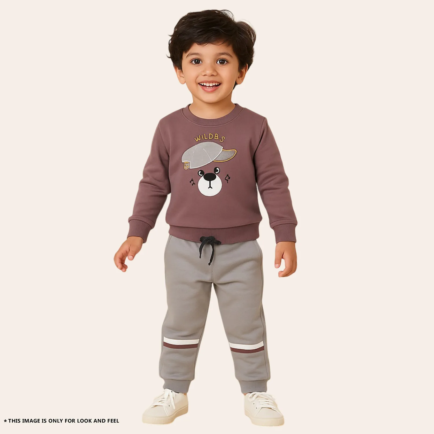 Make winter dressing simple with this Joy Kids fleece co‑ord set featuring a cozy sweatshirt and matching joggers designed for warmth, comfort, and style. The top showcases a friendly bear with a cap in textured embroidery, while the joggers include sporty contrast stripes and rib cuffs for a snug feel. Parents will appreciate the elastic waist with an adjustable drawcord, plus the soft brushed inner that keeps little ones warm on chilly days without bulk. Perfect for outings, daycare, and lounging, this set pairs easily with sneakers and a jacket for a complete winter look.